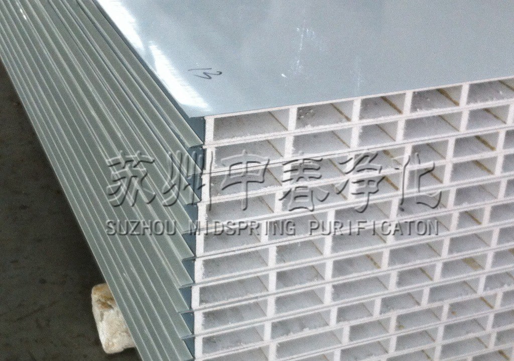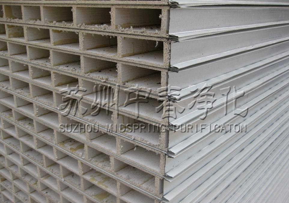 以二層防火玻鎂板、中間加防火玻鎂內(nèi)隔條為芯材,經(jīng)彩鋼夾芯板多功能連續(xù)生產(chǎn)線復(fù)合成型,中空玻鎂彩鋼夾芯板其特點(diǎn)板材為防火不燃材料組成,有效提高了彩鋼夾芯板的防火性能,又能滿足在有防潮濕環(huán)境條件下使用。
