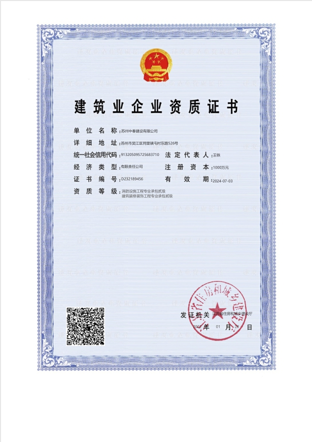 建筑裝飾裝修專業(yè)承包貳級資質(zhì)+消防設施工程專業(yè)承包貳級資質(zhì)